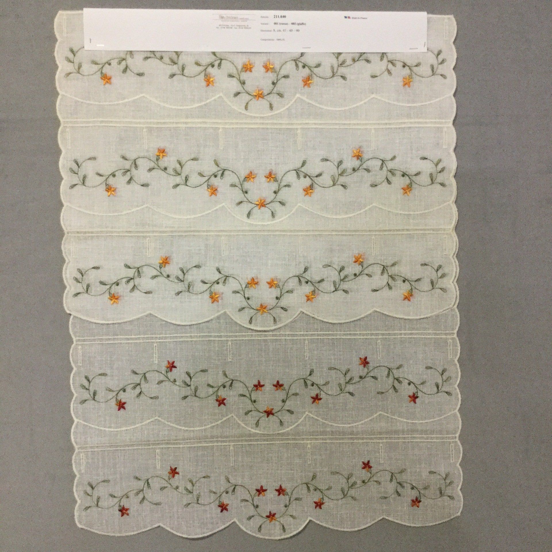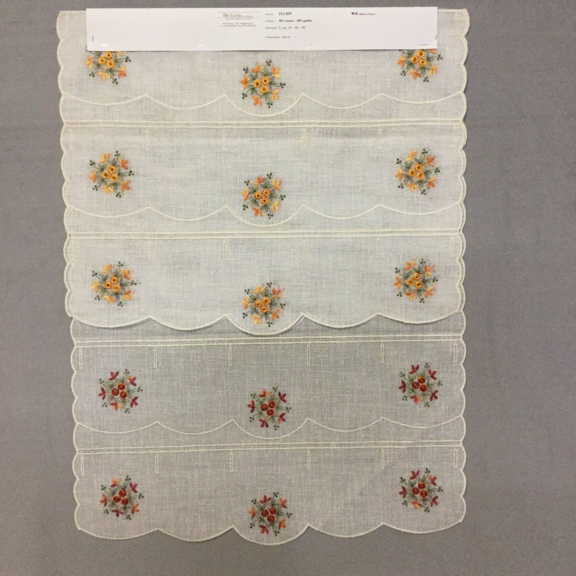 Una vasta gamma di tendaggi e tendine a vetro commercializzati sia in pezze intere che a taglio